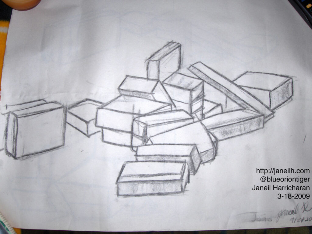 Nothing too much to be said about this; we had to use charcoal so we were discouraged to erase, and also add shading in addition to how we interpreted shapes.